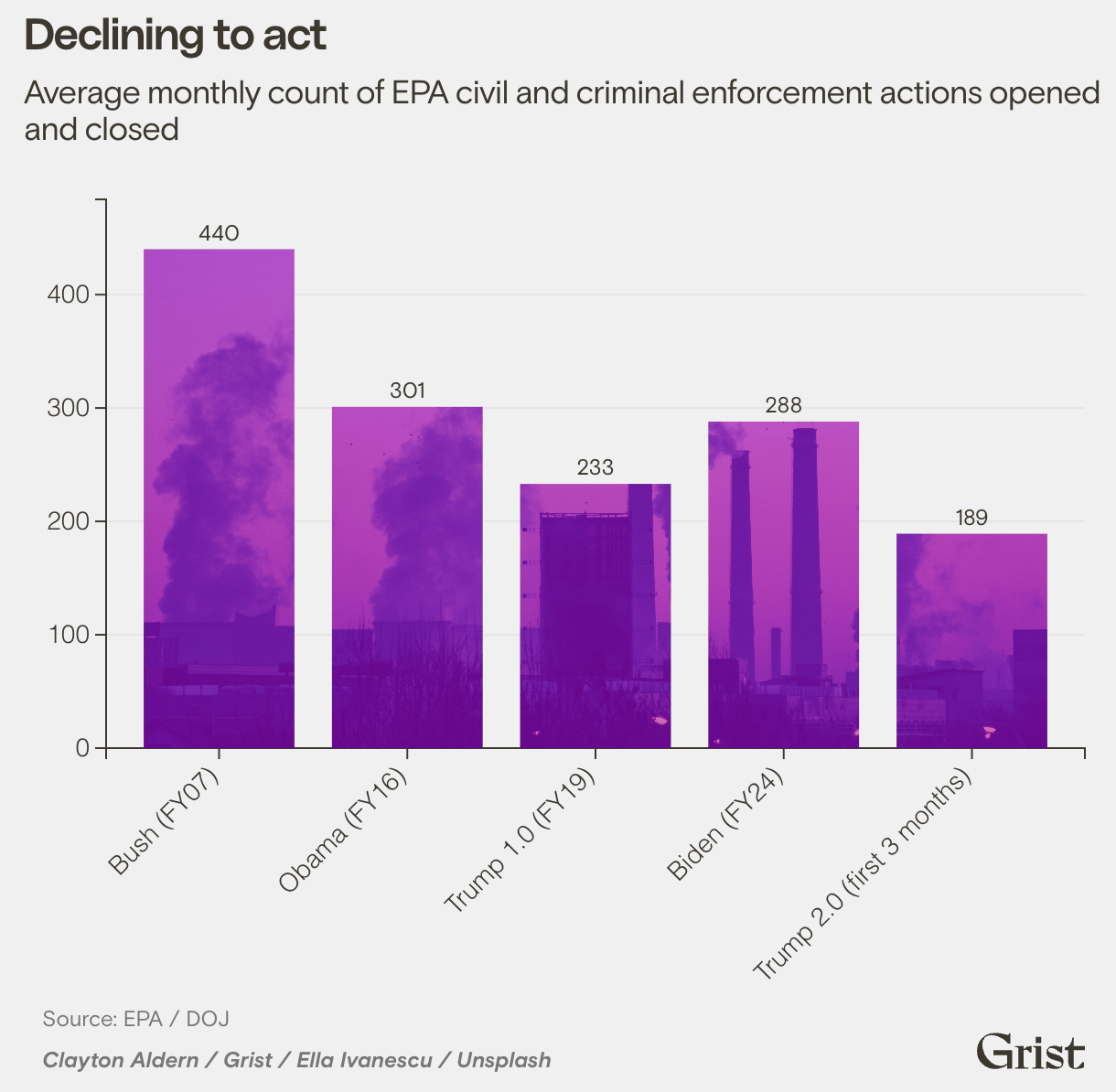 The Trump administration has all but stopped enforcing environmental laws by Tom Perkins for Grist