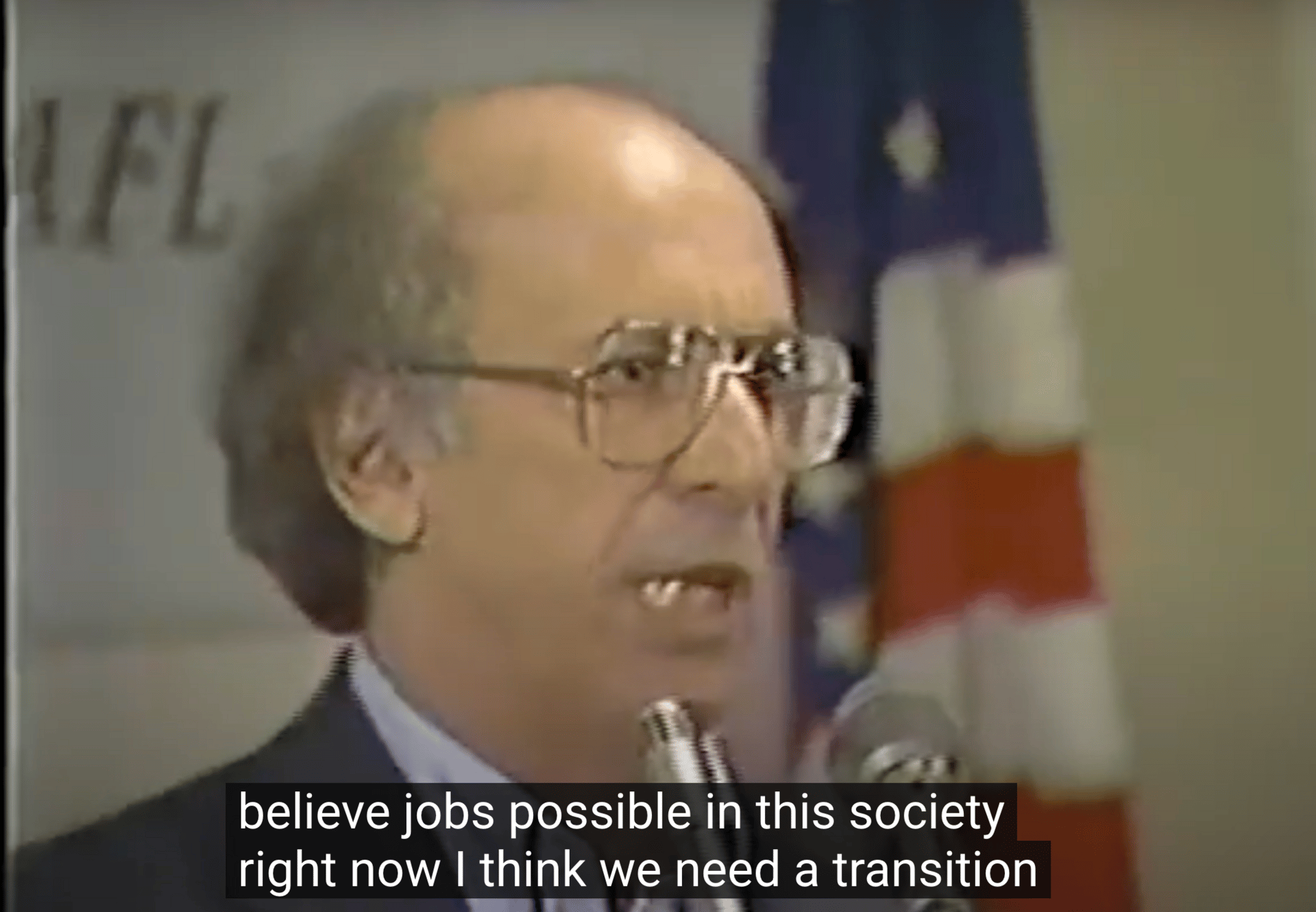 β€œI’m not a proponent of work. I still maintain the program the labor movement should be forget jobs we should look out for income. I think we need a transition I think we go take care of nature environment…we’ve got to switch over to a different type of work. β€œ